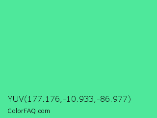YUV 177.176,-10.933,-86.977 Color is a light green color and the nearest color is Eucalyptus #44d7a8. Hex code #4ee89b and RGB value is rgb(78,232,155). In RGB color space, this color is composed of 31% red, 91% green, 61% blue, In CMYK color space, this color is composed of 66% cyan, 0% magenta, 33% yellow , 9% black , In HSL color space, this color has a hue angle of 150° , 77% saturation and 61% lightness.