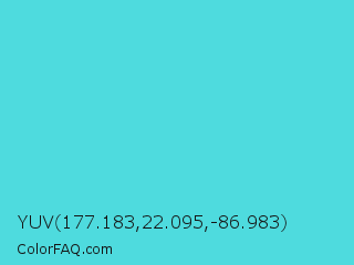 YUV 177.183,22.095,-86.983 Color is a normal cyan color and the nearest color is Turquoise #40e0d0. Hex code #4edbde and RGB value is rgb(78,219,222). In RGB color space, this color is composed of 31% red, 86% green, 87% blue, In CMYK color space, this color is composed of 65% cyan, 1% magenta, 0% yellow , 13% black , In HSL color space, this color has a hue angle of 181° , 69% saturation and 59% lightness.