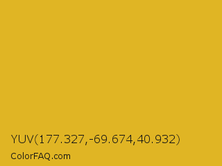 YUV 177.327,-69.674,40.932 Color is a normal yellow color and the nearest color is Urobilin #e1ad21. Hex code #e0b524 and RGB value is rgb(224,181,36). In RGB color space, this color is composed of 88% red, 71% green, 14% blue, In CMYK color space, this color is composed of 0% cyan, 19% magenta, 84% yellow , 12% black , In HSL color space, this color has a hue angle of 46° , 75% saturation and 51% lightness.