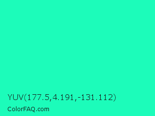 YUV 177.5,4.191,-131.112 Color is a normal green color and the nearest color is Medium Spring Green #00fa9a. Hex code #1cfcba and RGB value is rgb(28,252,186). In RGB color space, this color is composed of 11% red, 99% green, 73% blue, In CMYK color space, this color is composed of 89% cyan, 0% magenta, 26% yellow , 1% black , In HSL color space, this color has a hue angle of 162° , 97% saturation and 55% lightness.