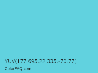 YUV 177.695,22.335,-70.77 Color is a light cyan color and the nearest color is Viking #64ccdb. Hex code #61d2df and RGB value is rgb(97,210,223). In RGB color space, this color is composed of 38% red, 82% green, 87% blue, In CMYK color space, this color is composed of 57% cyan, 6% magenta, 0% yellow , 13% black , In HSL color space, this color has a hue angle of 186° , 66% saturation and 63% lightness.