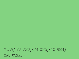 YUV 177.732,-24.025,-40.984 Color is a light green color and the nearest color is Pastel Green #77dd77. Hex code #83d381 and RGB value is rgb(131,211,129). In RGB color space, this color is composed of 51% red, 83% green, 51% blue, In CMYK color space, this color is composed of 38% cyan, 0% magenta, 39% yellow , 17% black , In HSL color space, this color has a hue angle of 119° , 48% saturation and 67% lightness.