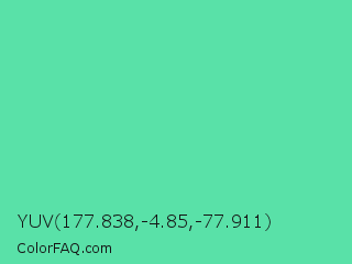 YUV 177.838,-4.85,-77.911 Color is a light green color and the nearest color is Medium Aquamarine #66ddaa. Hex code #59e1a8 and RGB value is rgb(89,225,168). In RGB color space, this color is composed of 35% red, 88% green, 66% blue, In CMYK color space, this color is composed of 60% cyan, 0% magenta, 25% yellow , 12% black , In HSL color space, this color has a hue angle of 155° , 69% saturation and 62% lightness.