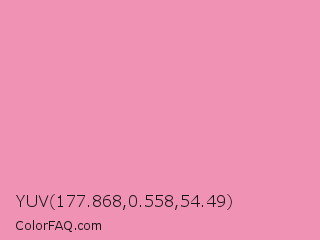 YUV 177.868,0.558,54.49 Color is a light rose color and the nearest color is Mauvelous #f091a9. Hex code #f092b3 and RGB value is rgb(240,146,179). In RGB color space, this color is composed of 94% red, 57% green, 70% blue, In CMYK color space, this color is composed of 0% cyan, 39% magenta, 25% yellow , 6% black , In HSL color space, this color has a hue angle of 339° , 76% saturation and 76% lightness.