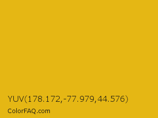 YUV 178.172,-77.979,44.576 Color is a normal yellow color and the nearest color is Gold Tips #deba13. Hex code #e5b714 and RGB value is rgb(229,183,20). In RGB color space, this color is composed of 90% red, 72% green, 8% blue, In CMYK color space, this color is composed of 0% cyan, 20% magenta, 91% yellow , 10% black , In HSL color space, this color has a hue angle of 47° , 84% saturation and 49% lightness.