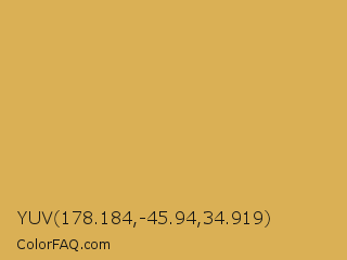 YUV 178.184,-45.94,34.919 Color is a normal orange color and the nearest color is Sunray #e3ab57. Hex code #dab055 and RGB value is rgb(218,176,85). In RGB color space, this color is composed of 85% red, 69% green, 33% blue, In CMYK color space, this color is composed of 0% cyan, 19% magenta, 61% yellow , 15% black , In HSL color space, this color has a hue angle of 41° , 64% saturation and 59% lightness.