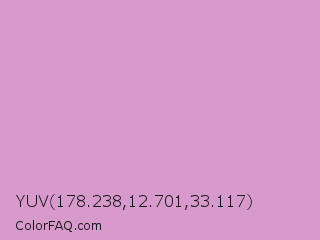 YUV 178.238,12.701,33.117 Color is a light magenta color and the nearest color is Light Medium Orchid #d39bcb. Hex code #d89acc and RGB value is rgb(216,154,204). In RGB color space, this color is composed of 85% red, 60% green, 80% blue, In CMYK color space, this color is composed of 0% cyan, 29% magenta, 6% yellow , 15% black , In HSL color space, this color has a hue angle of 312° , 44% saturation and 73% lightness.