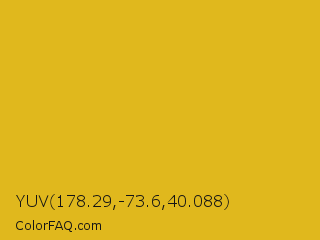 YUV 178.29,-73.6,40.088 Color is a normal yellow color and the nearest color is Gold Tips #deba13. Hex code #e0b81d and RGB value is rgb(224,184,29). In RGB color space, this color is composed of 88% red, 72% green, 11% blue, In CMYK color space, this color is composed of 0% cyan, 18% magenta, 87% yellow , 12% black , In HSL color space, this color has a hue angle of 48° , 77% saturation and 50% lightness.
