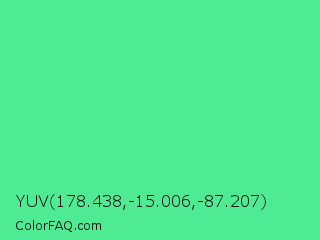 YUV 178.438,-15.006,-87.207 Color is a light green color and the nearest color is Very Light Malachite Green #64e986. Hex code #4feb94 and RGB value is rgb(79,235,148). In RGB color space, this color is composed of 31% red, 92% green, 58% blue, In CMYK color space, this color is composed of 66% cyan, 0% magenta, 37% yellow , 8% black , In HSL color space, this color has a hue angle of 147° , 80% saturation and 62% lightness.
