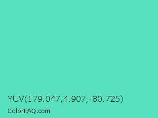 YUV 179.047,4.907,-80.725 Color is a light cyan color and the nearest color is Medium Aquamarine #66ddaa. Hex code #57e0bd and RGB value is rgb(87,224,189). In RGB color space, this color is composed of 34% red, 88% green, 74% blue, In CMYK color space, this color is composed of 61% cyan, 0% magenta, 16% yellow , 12% black , In HSL color space, this color has a hue angle of 165° , 69% saturation and 61% lightness.