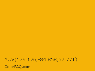 YUV 179.126,-84.858,57.771 Color is a normal orange color and the nearest color is UCLA Gold #ffb300. Hex code #f5b307 and RGB value is rgb(245,179,7). In RGB color space, this color is composed of 96% red, 70% green, 3% blue, In CMYK color space, this color is composed of 0% cyan, 27% magenta, 97% yellow , 4% black , In HSL color space, this color has a hue angle of 43° , 94% saturation and 49% lightness.