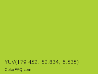 YUV 179.452,-62.834,-6.535 Color is a normal lime color and the nearest color is Android Green #a4c639. Hex code #acd034 and RGB value is rgb(172,208,52). In RGB color space, this color is composed of 67% red, 82% green, 20% blue, In CMYK color space, this color is composed of 17% cyan, 0% magenta, 75% yellow , 18% black , In HSL color space, this color has a hue angle of 74° , 62% saturation and 51% lightness.
