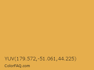 YUV 179.572,-51.061,44.225 Color is a normal orange color and the nearest color is Anzac #e0b646. Hex code #e6ae4c and RGB value is rgb(230,174,76). In RGB color space, this color is composed of 90% red, 68% green, 30% blue, In CMYK color space, this color is composed of 0% cyan, 24% magenta, 67% yellow , 10% black , In HSL color space, this color has a hue angle of 38° , 75% saturation and 60% lightness.
