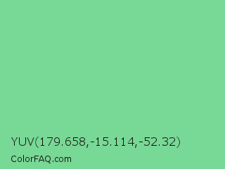 YUV 179.658,-15.114,-52.32 Color is a light green color and the nearest color is De York #7ac488. Hex code #78d895 and RGB value is rgb(120,216,149). In RGB color space, this color is composed of 47% red, 85% green, 58% blue, In CMYK color space, this color is composed of 44% cyan, 0% magenta, 31% yellow , 15% black , In HSL color space, this color has a hue angle of 138° , 55% saturation and 66% lightness.