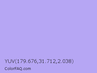 YUV 179.676,31.712,2.038 Color is a light indigo color and the nearest color is Biloba Flower #b2a1ea. Hex code #b6a6f4 and RGB value is rgb(182,166,244). In RGB color space, this color is composed of 71% red, 65% green, 96% blue, In CMYK color space, this color is composed of 25% cyan, 32% magenta, 0% yellow , 4% black , In HSL color space, this color has a hue angle of 252° , 78% saturation and 80% lightness.