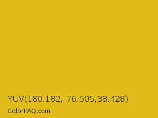 YUV 180.182,-76.505,38.428 Color is a normal yellow color and the nearest color is Gold Tips #deba13. Hex code #e0bc19 and RGB value is rgb(224,188,25). In RGB color space, this color is composed of 88% red, 74% green, 10% blue, In CMYK color space, this color is composed of 0% cyan, 16% magenta, 89% yellow , 12% black , In HSL color space, this color has a hue angle of 49° , 80% saturation and 49% lightness.