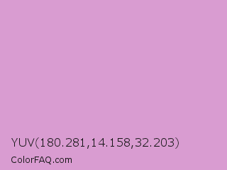 YUV 180.281,14.158,32.203 Color is a light magenta color and the nearest color is Light Medium Orchid #d39bcb. Hex code #d99cd1 and RGB value is rgb(217,156,209). In RGB color space, this color is composed of 85% red, 61% green, 82% blue, In CMYK color space, this color is composed of 0% cyan, 28% magenta, 4% yellow , 15% black , In HSL color space, this color has a hue angle of 308° , 45% saturation and 73% lightness.