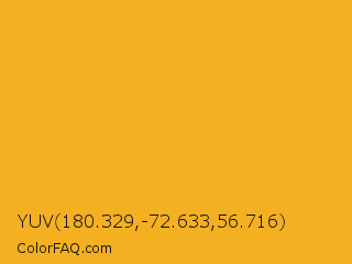 YUV 180.329,-72.633,56.716 Color is a normal orange color and the nearest color is My Sin #ffb31f. Hex code #f5b021 and RGB value is rgb(245,176,33). In RGB color space, this color is composed of 96% red, 69% green, 13% blue, In CMYK color space, this color is composed of 0% cyan, 28% magenta, 87% yellow , 4% black , In HSL color space, this color has a hue angle of 40° , 91% saturation and 55% lightness.