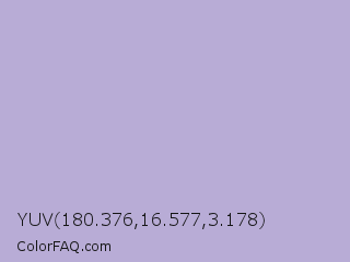 YUV 180.376,16.577,3.178 Color is a light indigo color and the nearest color is Lavender Gray #bdbbd7. Hex code #b8acd6 and RGB value is rgb(184,172,214). In RGB color space, this color is composed of 72% red, 67% green, 84% blue, In CMYK color space, this color is composed of 14% cyan, 20% magenta, 0% yellow , 16% black , In HSL color space, this color has a hue angle of 257° , 34% saturation and 76% lightness.