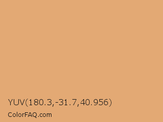 YUV 180.3,-31.7,40.956 Color is a light orange color and the nearest color is Fawn #e5aa70. Hex code #e3a974 and RGB value is rgb(227,169,116). In RGB color space, this color is composed of 89% red, 66% green, 45% blue, In CMYK color space, this color is composed of 0% cyan, 26% magenta, 49% yellow , 11% black , In HSL color space, this color has a hue angle of 29° , 66% saturation and 67% lightness.