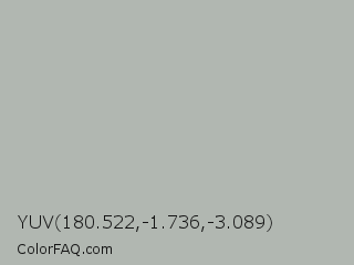 YUV 180.522,-1.736,-3.089 Color is a light green color and the nearest color is Ash Gray #b2beb5. Hex code #b1b7b1 and RGB value is rgb(177,183,177). In RGB color space, this color is composed of 69% red, 72% green, 69% blue, In CMYK color space, this color is composed of 3% cyan, 0% magenta, 3% yellow , 28% black , In HSL color space, this color has a hue angle of 120° , 4% saturation and 71% lightness.