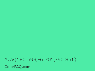 YUV 180.593,-6.701,-90.851 Color is a light green color and the nearest color is Eucalyptus #44d7a8. Hex code #4deca7 and RGB value is rgb(77,236,167). In RGB color space, this color is composed of 30% red, 93% green, 65% blue, In CMYK color space, this color is composed of 67% cyan, 0% magenta, 29% yellow , 7% black , In HSL color space, this color has a hue angle of 154° , 81% saturation and 61% lightness.