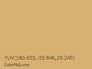YUV 180.653,-33.846,29.245 Color is a light orange color and the nearest color is Harvest Gold #e0b974. Hex code #d6b170 and RGB value is rgb(214,177,112). In RGB color space, this color is composed of 84% red, 69% green, 44% blue, In CMYK color space, this color is composed of 0% cyan, 17% magenta, 48% yellow , 16% black , In HSL color space, this color has a hue angle of 38° , 55% saturation and 64% lightness.