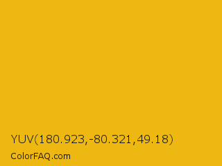 YUV 180.923,-80.321,49.18 Color is a normal orange color and the nearest color is Buttercup #f3ad16. Hex code #edb812 and RGB value is rgb(237,184,18). In RGB color space, this color is composed of 93% red, 72% green, 7% blue, In CMYK color space, this color is composed of 0% cyan, 22% magenta, 92% yellow , 7% black , In HSL color space, this color has a hue angle of 45° , 86% saturation and 50% lightness.