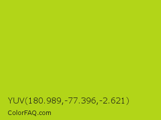 YUV 180.989,-77.396,-2.621 Color is a normal lime color and the nearest color is Inch Worm #b0e313. Hex code #b2d518 and RGB value is rgb(178,213,24). In RGB color space, this color is composed of 70% red, 84% green, 9% blue, In CMYK color space, this color is composed of 16% cyan, 0% magenta, 89% yellow , 16% black , In HSL color space, this color has a hue angle of 71° , 80% saturation and 46% lightness.