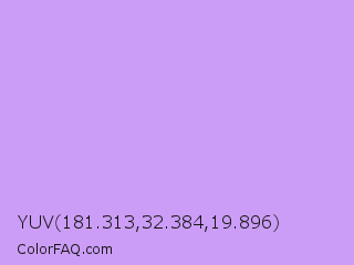 YUV 181.313,32.384,19.896 Color is a light purple color and the nearest color is Pale Violet #cc99ff. Hex code #cc9df7 and RGB value is rgb(204,157,247). In RGB color space, this color is composed of 80% red, 62% green, 97% blue, In CMYK color space, this color is composed of 17% cyan, 36% magenta, 0% yellow , 3% black , In HSL color space, this color has a hue angle of 271° , 85% saturation and 79% lightness.