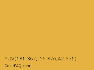 YUV 181.367,-56.876,42.651 Color is a normal orange color and the nearest color is Anzac #e0b646. Hex code #e6b342 and RGB value is rgb(230,179,66). In RGB color space, this color is composed of 90% red, 70% green, 26% blue, In CMYK color space, this color is composed of 0% cyan, 22% magenta, 71% yellow , 10% black , In HSL color space, this color has a hue angle of 41° , 77% saturation and 58% lightness.