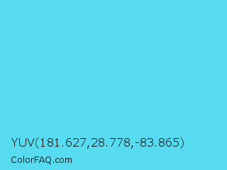 YUV 181.627,28.778,-83.865 Color is a light cyan color and the nearest color is Turquoise Blue #6cdae7. Hex code #56dbf0 and RGB value is rgb(86,219,240). In RGB color space, this color is composed of 34% red, 86% green, 94% blue, In CMYK color space, this color is composed of 64% cyan, 9% magenta, 0% yellow , 6% black , In HSL color space, this color has a hue angle of 188° , 84% saturation and 64% lightness.