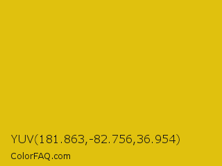 YUV 181.863,-82.756,36.954 Color is a normal yellow color and the nearest color is Gold Tips #deba13. Hex code #e0c10e and RGB value is rgb(224,193,14). In RGB color space, this color is composed of 88% red, 76% green, 5% blue, In CMYK color space, this color is composed of 0% cyan, 14% magenta, 94% yellow , 12% black , In HSL color space, this color has a hue angle of 51° , 88% saturation and 47% lightness.