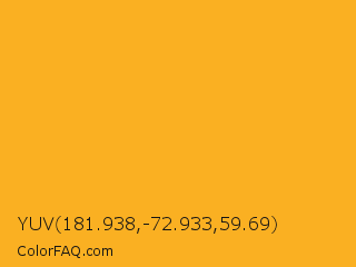 YUV 181.938,-72.933,59.69 Color is a normal orange color and the nearest color is My Sin #ffb31f. Hex code #fab022 and RGB value is rgb(250,176,34). In RGB color space, this color is composed of 98% red, 69% green, 13% blue, In CMYK color space, this color is composed of 0% cyan, 30% magenta, 86% yellow , 2% black , In HSL color space, this color has a hue angle of 39° , 96% saturation and 56% lightness.