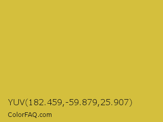 YUV 182.459,-59.879,25.907 Color is a normal yellow color and the nearest color is Old Gold #cfb53b. Hex code #d4bf3d and RGB value is rgb(212,191,61). In RGB color space, this color is composed of 83% red, 75% green, 24% blue, In CMYK color space, this color is composed of 0% cyan, 10% magenta, 71% yellow , 17% black , In HSL color space, this color has a hue angle of 52° , 64% saturation and 54% lightness.