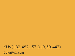 YUV 182.482,-57.919,50.443 Color is a normal orange color and the nearest color is Tulip Tree #eab33b. Hex code #f0b041 and RGB value is rgb(240,176,65). In RGB color space, this color is composed of 94% red, 69% green, 25% blue, In CMYK color space, this color is composed of 0% cyan, 27% magenta, 73% yellow , 6% black , In HSL color space, this color has a hue angle of 38° , 85% saturation and 60% lightness.