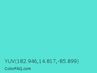 YUV 182.946,14.817,-85.899 Color is a light cyan color and the nearest color is Turquoise #40e0d0. Hex code #55e3d5 and RGB value is rgb(85,227,213). In RGB color space, this color is composed of 33% red, 89% green, 84% blue, In CMYK color space, this color is composed of 63% cyan, 0% magenta, 6% yellow , 11% black , In HSL color space, this color has a hue angle of 174° , 72% saturation and 61% lightness.