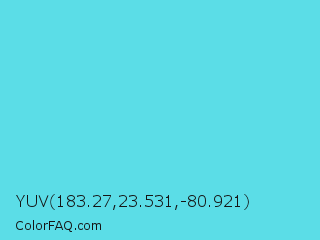 YUV 183.27,23.531,-80.921 Color is a light cyan color and the nearest color is Turquoise Blue #6cdae7. Hex code #5bdde7 and RGB value is rgb(91,221,231). In RGB color space, this color is composed of 36% red, 87% green, 91% blue, In CMYK color space, this color is composed of 61% cyan, 4% magenta, 0% yellow , 9% black , In HSL color space, this color has a hue angle of 184° , 74% saturation and 63% lightness.