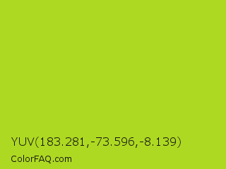 YUV 183.281,-73.596,-8.139 Color is a normal lime color and the nearest color is Inch Worm #b0e313. Hex code #aed922 and RGB value is rgb(174,217,34). In RGB color space, this color is composed of 68% red, 85% green, 13% blue, In CMYK color space, this color is composed of 20% cyan, 0% magenta, 84% yellow , 15% black , In HSL color space, this color has a hue angle of 74° , 73% saturation and 49% lightness.