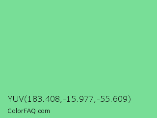 YUV 183.408,-15.977,-55.609 Color is a light green color and the nearest color is Medium Aquamarine #66ddaa. Hex code #78de97 and RGB value is rgb(120,222,151). In RGB color space, this color is composed of 47% red, 87% green, 59% blue, In CMYK color space, this color is composed of 46% cyan, 0% magenta, 32% yellow , 13% black , In HSL color space, this color has a hue angle of 138° , 61% saturation and 67% lightness.