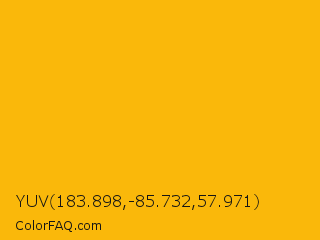 YUV 183.898,-85.732,57.971 Color is a normal orange color and the nearest color is Selective Yellow #ffba00. Hex code #fab80a and RGB value is rgb(250,184,10). In RGB color space, this color is composed of 98% red, 72% green, 4% blue, In CMYK color space, this color is composed of 0% cyan, 26% magenta, 96% yellow , 2% black , In HSL color space, this color has a hue angle of 44° , 96% saturation and 51% lightness.