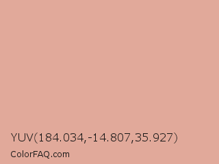 YUV 184.034,-14.807,35.927 Color is a light red color and the nearest color is Pastel Pink #dea5a4. Hex code #e1a99a and RGB value is rgb(225,169,154). In RGB color space, this color is composed of 88% red, 66% green, 60% blue, In CMYK color space, this color is composed of 0% cyan, 25% magenta, 32% yellow , 12% black , In HSL color space, this color has a hue angle of 13° , 54% saturation and 74% lightness.