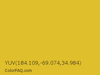 YUV 184.109,-69.074,34.984 Color is a normal yellow color and the nearest color is Meat Brown #e5b73b. Hex code #e0bf2c and RGB value is rgb(224,191,44). In RGB color space, this color is composed of 88% red, 75% green, 17% blue, In CMYK color space, this color is composed of 0% cyan, 15% magenta, 80% yellow , 12% black , In HSL color space, this color has a hue angle of 49° , 74% saturation and 53% lightness.