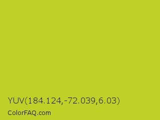 YUV 184.124,-72.039,6.03 Color is a normal yellow color and the nearest color is Key Lime Pie #bfc921. Hex code #bfd126 and RGB value is rgb(191,209,38). In RGB color space, this color is composed of 75% red, 82% green, 15% blue, In CMYK color space, this color is composed of 9% cyan, 0% magenta, 82% yellow , 18% black , In HSL color space, this color has a hue angle of 66° , 69% saturation and 48% lightness.