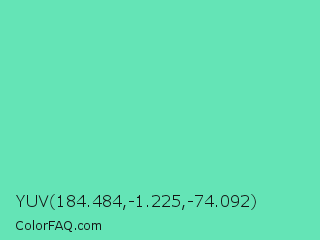 YUV 184.484,-1.225,-74.092 Color is a light green color and the nearest color is Medium Aquamarine #66ddaa. Hex code #64e4b6 and RGB value is rgb(100,228,182). In RGB color space, this color is composed of 39% red, 89% green, 71% blue, In CMYK color space, this color is composed of 56% cyan, 0% magenta, 20% yellow , 11% black , In HSL color space, this color has a hue angle of 158° , 70% saturation and 64% lightness.