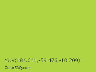 YUV 184.641,-59.476,-10.209 Color is a normal lime color and the nearest color is Conifer #acdd4d. Hex code #add640 and RGB value is rgb(173,214,64). In RGB color space, this color is composed of 68% red, 84% green, 25% blue, In CMYK color space, this color is composed of 19% cyan, 0% magenta, 70% yellow , 16% black , In HSL color space, this color has a hue angle of 76° , 65% saturation and 55% lightness.