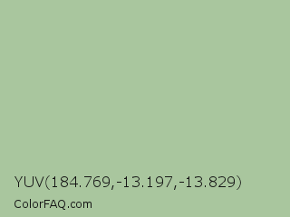 YUV 184.769,-13.197,-13.829 Color is a light green color and the nearest color is Norway #a8bd9f. Hex code #a9c69e and RGB value is rgb(169,198,158). In RGB color space, this color is composed of 66% red, 78% green, 62% blue, In CMYK color space, this color is composed of 15% cyan, 0% magenta, 20% yellow , 22% black , In HSL color space, this color has a hue angle of 104° , 26% saturation and 70% lightness.