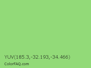 YUV 185.3,-32.193,-34.466 Color is a light green color and the nearest color is Pistachio #93c572. Hex code #92da78 and RGB value is rgb(146,218,120). In RGB color space, this color is composed of 57% red, 85% green, 47% blue, In CMYK color space, this color is composed of 33% cyan, 0% magenta, 45% yellow , 15% black , In HSL color space, this color has a hue angle of 104° , 57% saturation and 66% lightness.