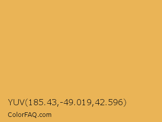 YUV 185.43,-49.019,42.596 Color is a light orange color and the nearest color is Sunray #e3ab57. Hex code #eab456 and RGB value is rgb(234,180,86). In RGB color space, this color is composed of 92% red, 71% green, 34% blue, In CMYK color space, this color is composed of 0% cyan, 23% magenta, 63% yellow , 8% black , In HSL color space, this color has a hue angle of 38° , 78% saturation and 63% lightness.