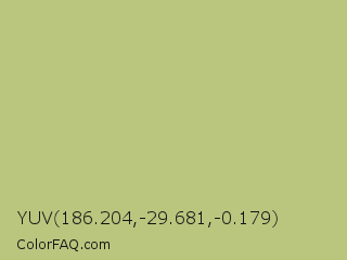 YUV 186.204,-29.681,-0.179 Color is a light yellow color and the nearest color is Sage #bcb88a. Hex code #bac67e and RGB value is rgb(186,198,126). In RGB color space, this color is composed of 73% red, 78% green, 49% blue, In CMYK color space, this color is composed of 6% cyan, 0% magenta, 36% yellow , 22% black , In HSL color space, this color has a hue angle of 70° , 39% saturation and 64% lightness.